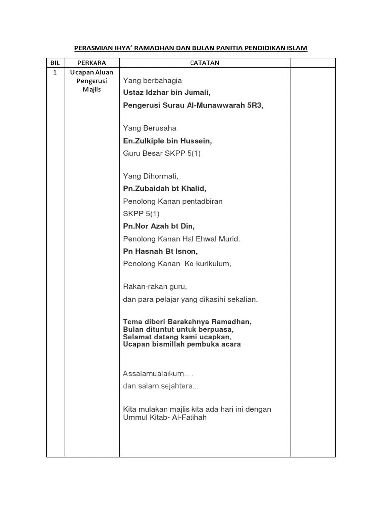Meramikan majlis persandingan cik/adinda maryah binti hj. Skrip majlis perkahwinan (teks emcee/ pengacara majlis perkahwinan) (pantun) sirih junjung berhias indah, sekacip pinang pembuka kata, bunga manggar. 1 ketibaan mempelai diiringi paluan kompang. Majlis perkahwinan nur liyana zainuddin & ahmad safwan abd aziz 16 ogos 2015 ( ahad ). Teks pengacara majlis perkahwinan · yasmin raihana binti ramlan & mohd khairul bin nejib · pada 12 november 2011 di dewan tnb,kempas johor. Teks pengacara majlis perkahwinan islamik. Skrip pengacara (majlis perkahwinan) nur ainaa. Majlis walimatul urus (nama pengantin lelaki dan perempuan). Teks ini dibacakan oleh kekanda (wakil keluarga) pengantin perempuan. Teks pengacara majlis perkahwinanmuhammad syakir bin roslan dan nurul najwa bt hj mohd nazripada 18 februari 2018 di teratak ibunda( kompang dimainkan)anak .